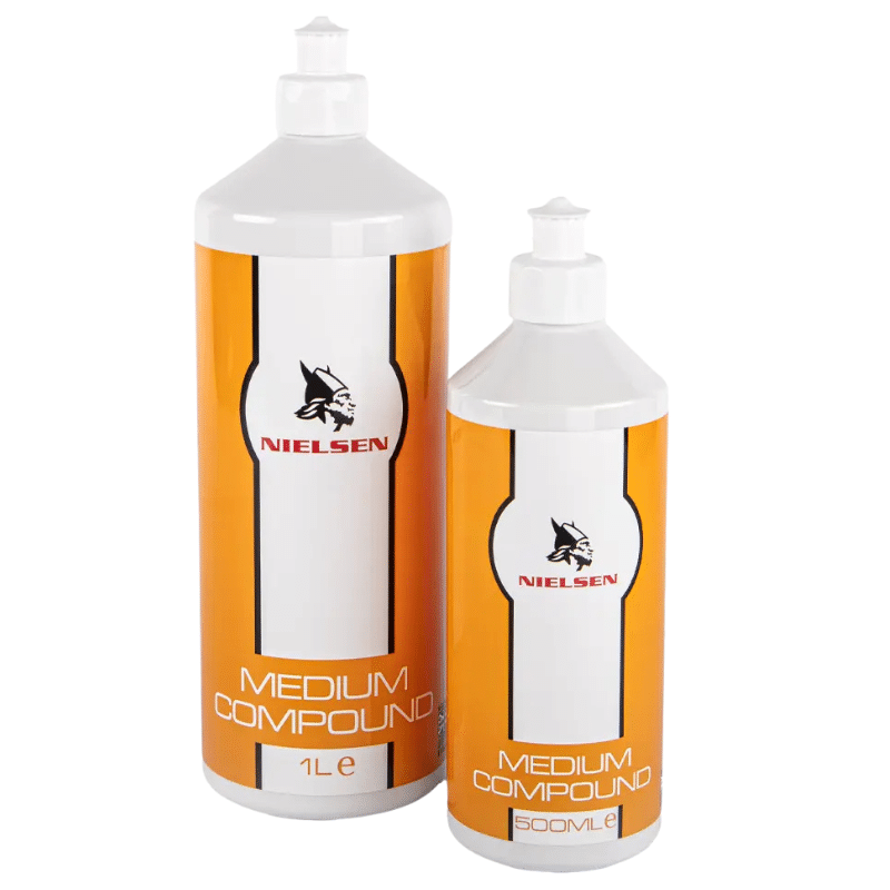 De Nielsen Medium Compound polijstpasta voor lakcorrectie is een geconcentreerde polijstpasta van medium sterkte met een zeer uniforme deeltjesgrootte, speciaal ontwikkeld voor het snel verwijderen van swirls, hologrammen en lichte lakdefecten.