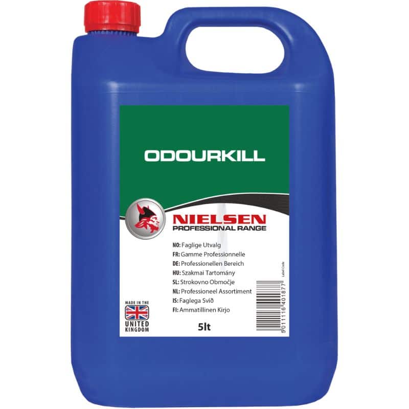 Odourkill maskeert en neutraliseert nare geuren en laat een frisse, langdurige geur achter, waardoor ruimtes schoon en aangenaam ruiken.